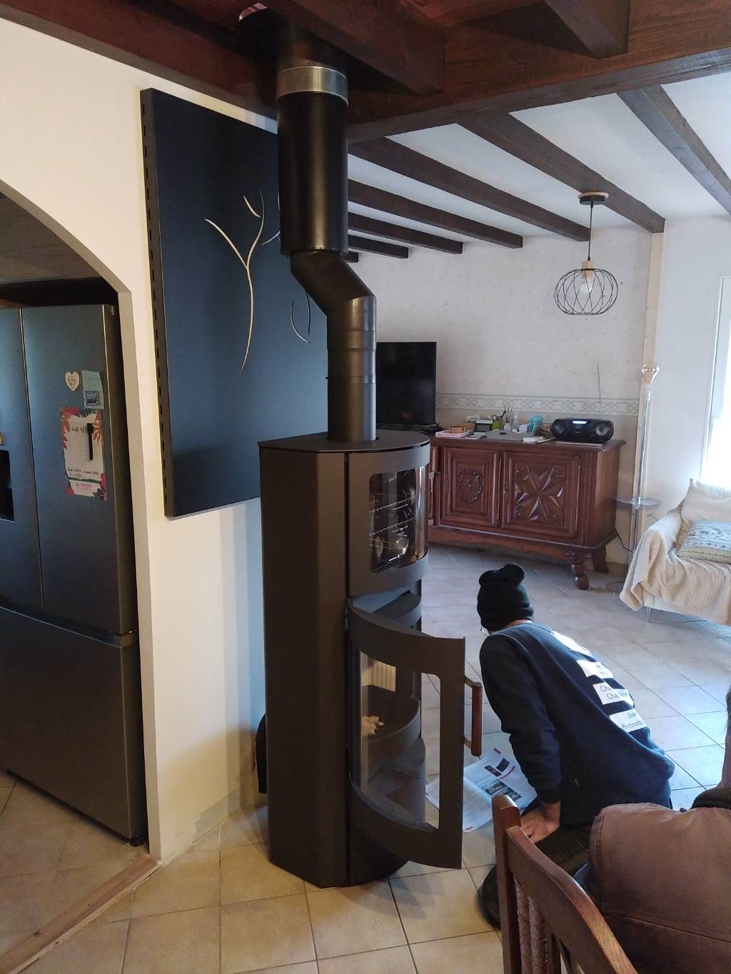 Notre équipe a posé un poêle à bois (bûche) de la marque Novaline modèle Gustosa dans un village du Comminges.