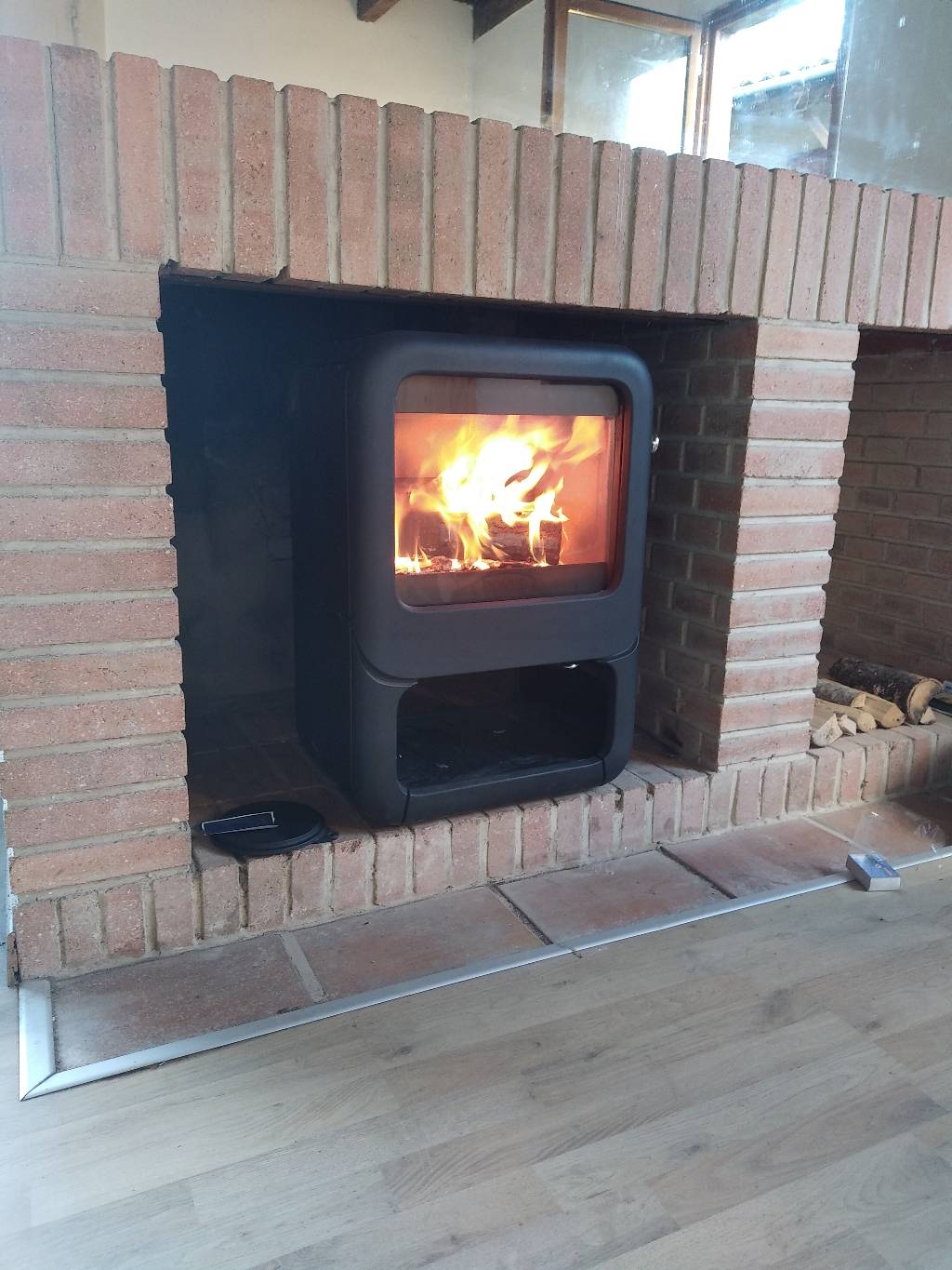 Après le chantier, une mise en service du poêle a été réalisée avec le cliente car l'utilisation d 'un poêle est très important et attention à toujours utiliser du bois sec afin d'augmenter les performances de celui-ci.