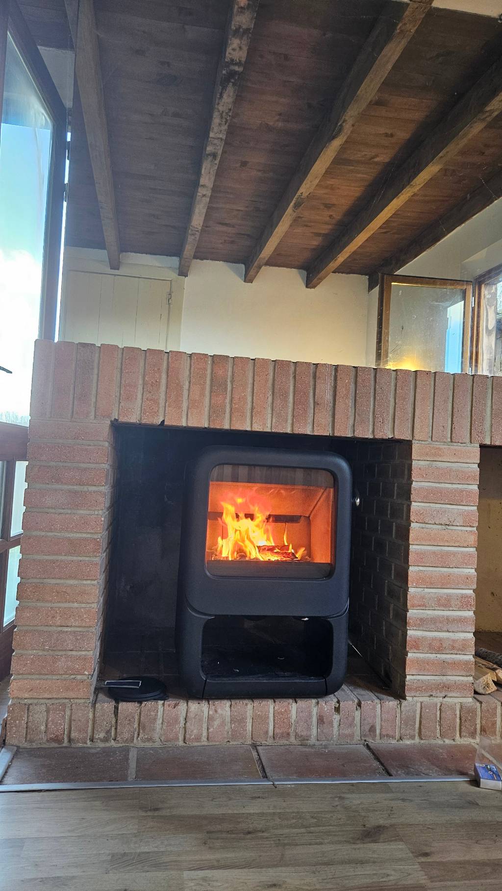 Une entrée d'air diam 100m a également été réalisée afin de raccorder le poêle directement sur l'extérieur.